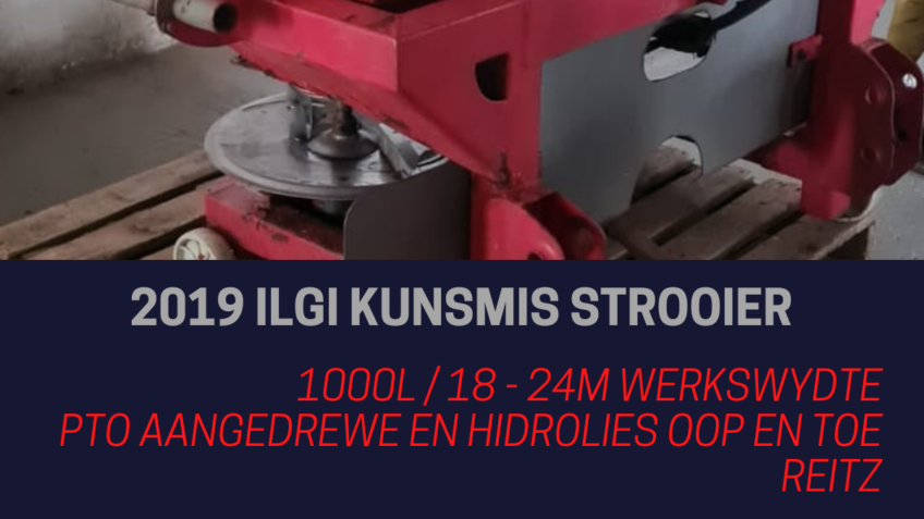 2019 Ilgi Kunsmis Strooier 1000L / 18 – 24m Werkswydte PTO Aangedrewe en Hidrolies oop en toe Reitz R 40 000.00 + Btw