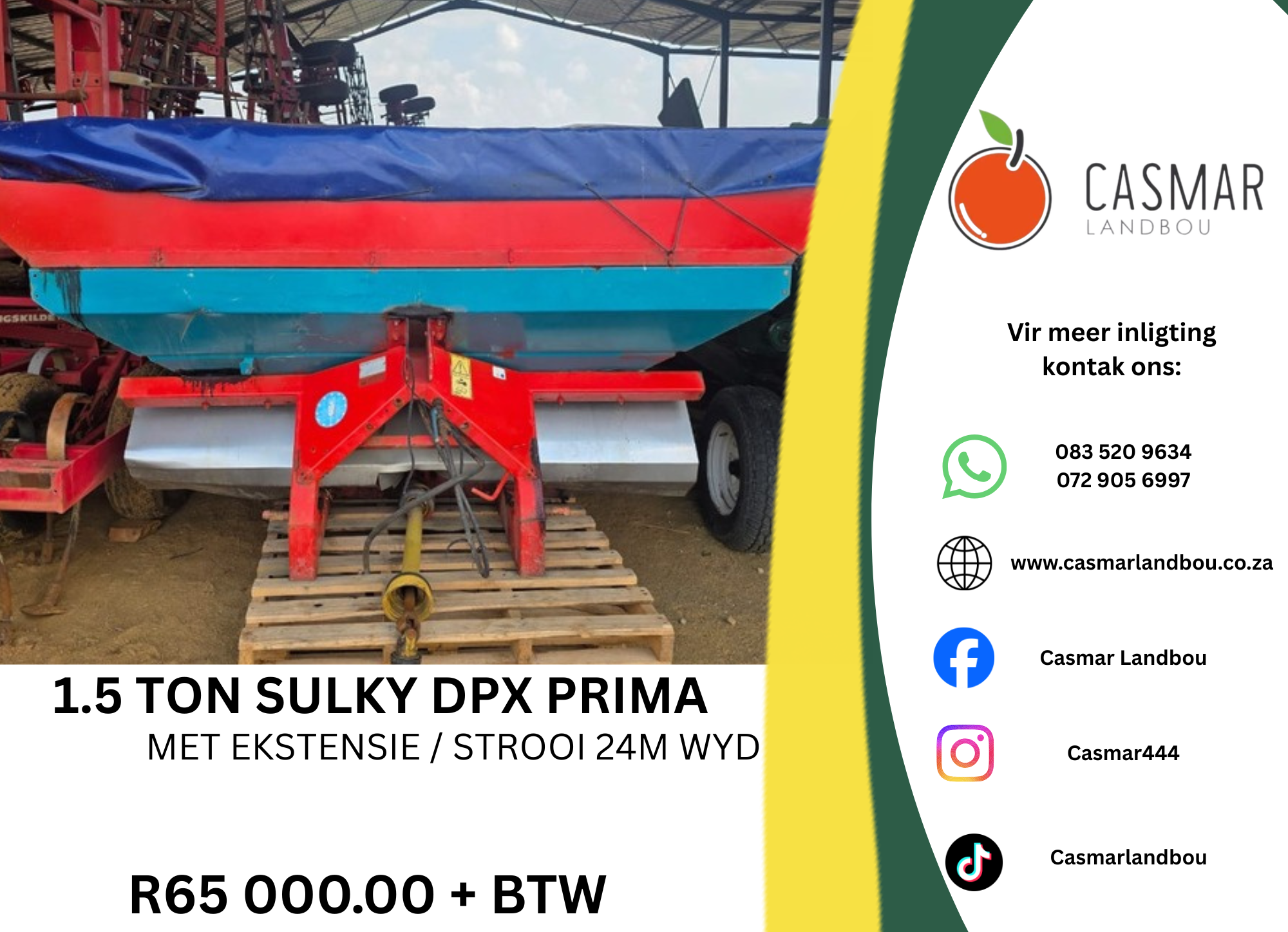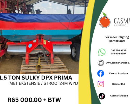 1.5 Ton Sulky DPX Prima Met ekstensies / Strooi 24m Wyd