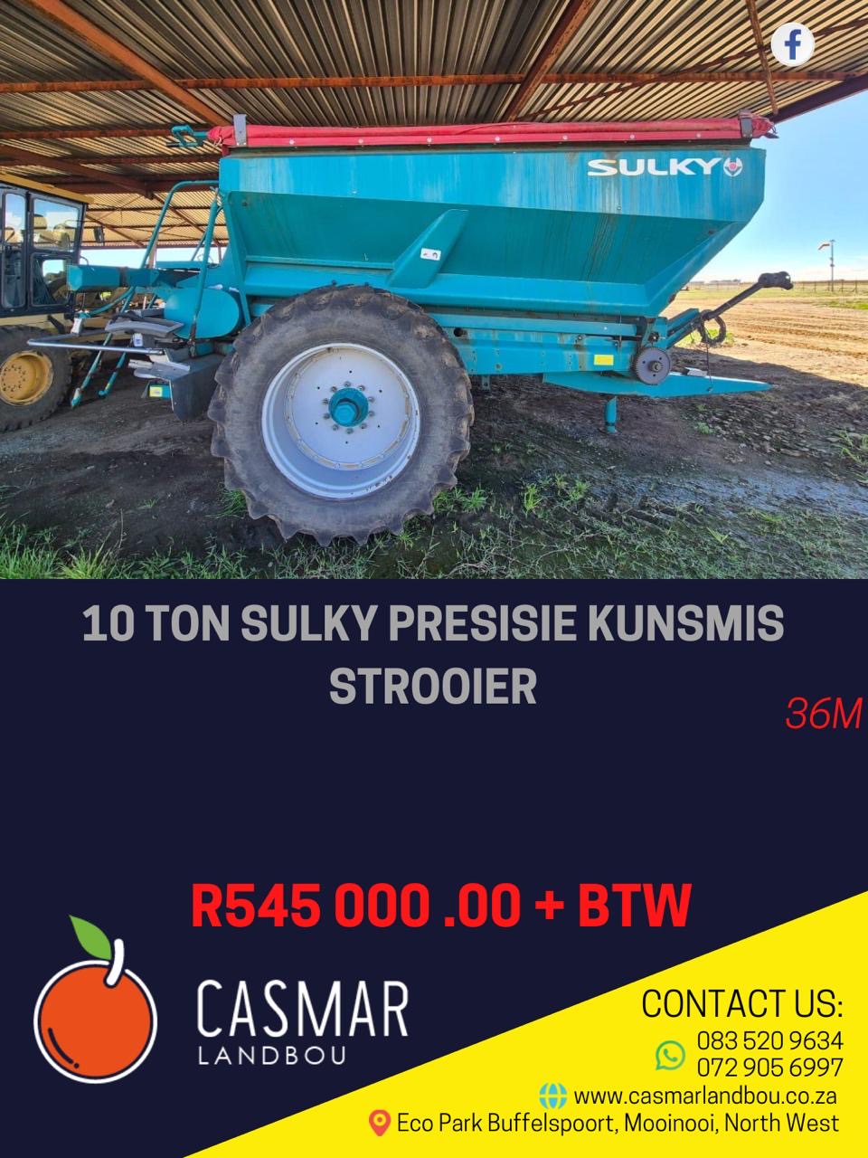 10ton Sulky Presisie KunsmisStrooier36m