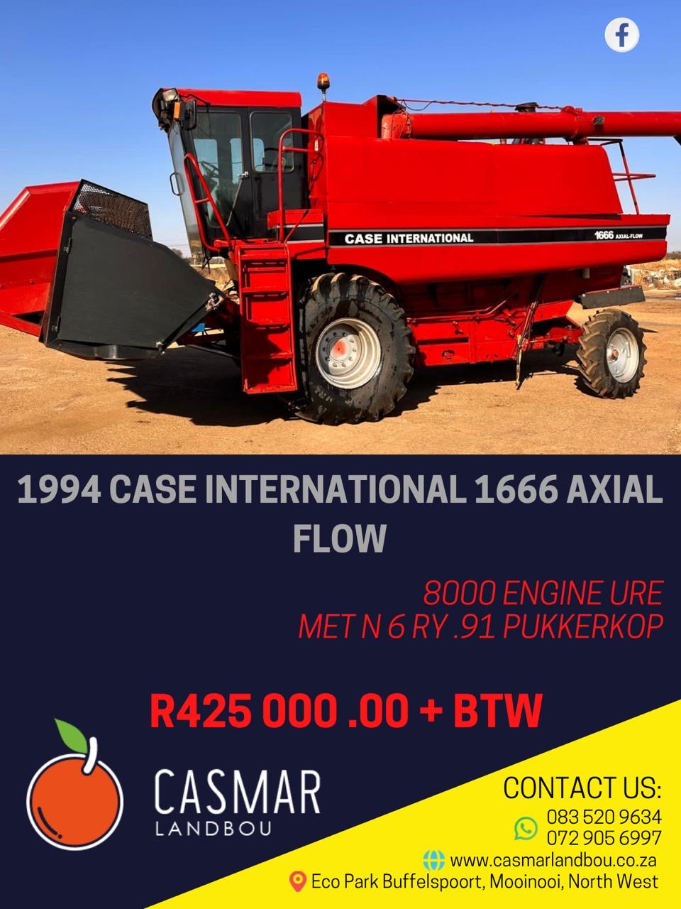 1994 Case international 1666 Axial Flow 8000 Engine ure met 6 ry .91 Plukkerkop R425 000+Btw