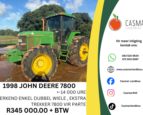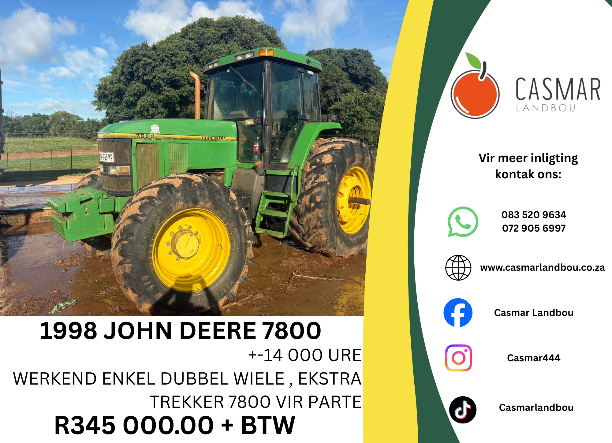 1996 John deere 7800 +- 14000 ure werkend enkel Dubbel Wiele