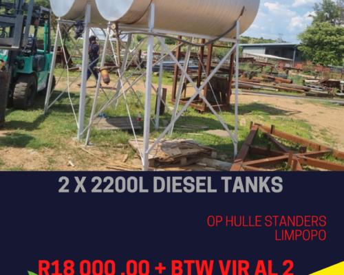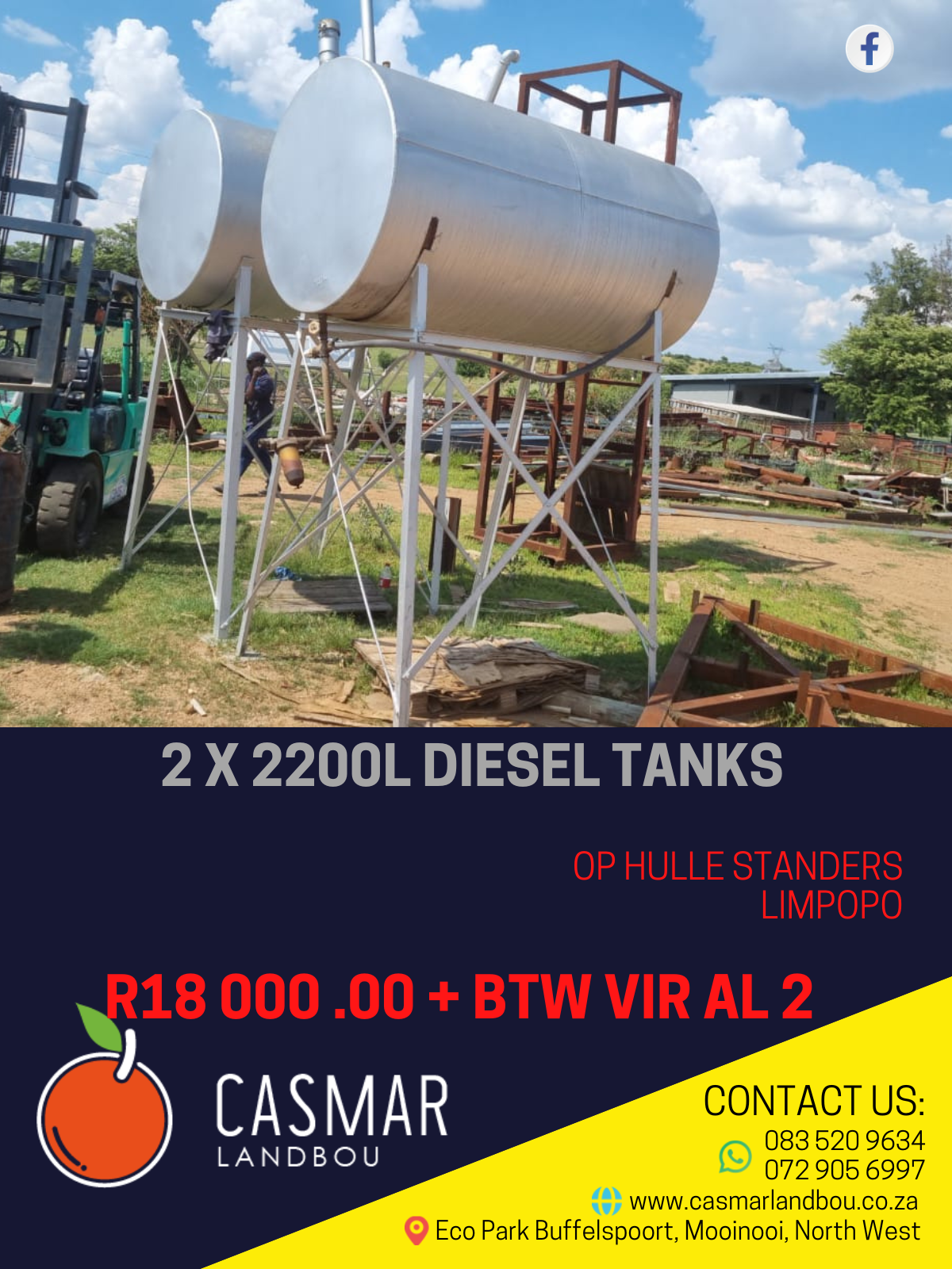 2 x 2200L Diesel Tanks op hulle StandersR18000+Btw vir al 2Limpopo