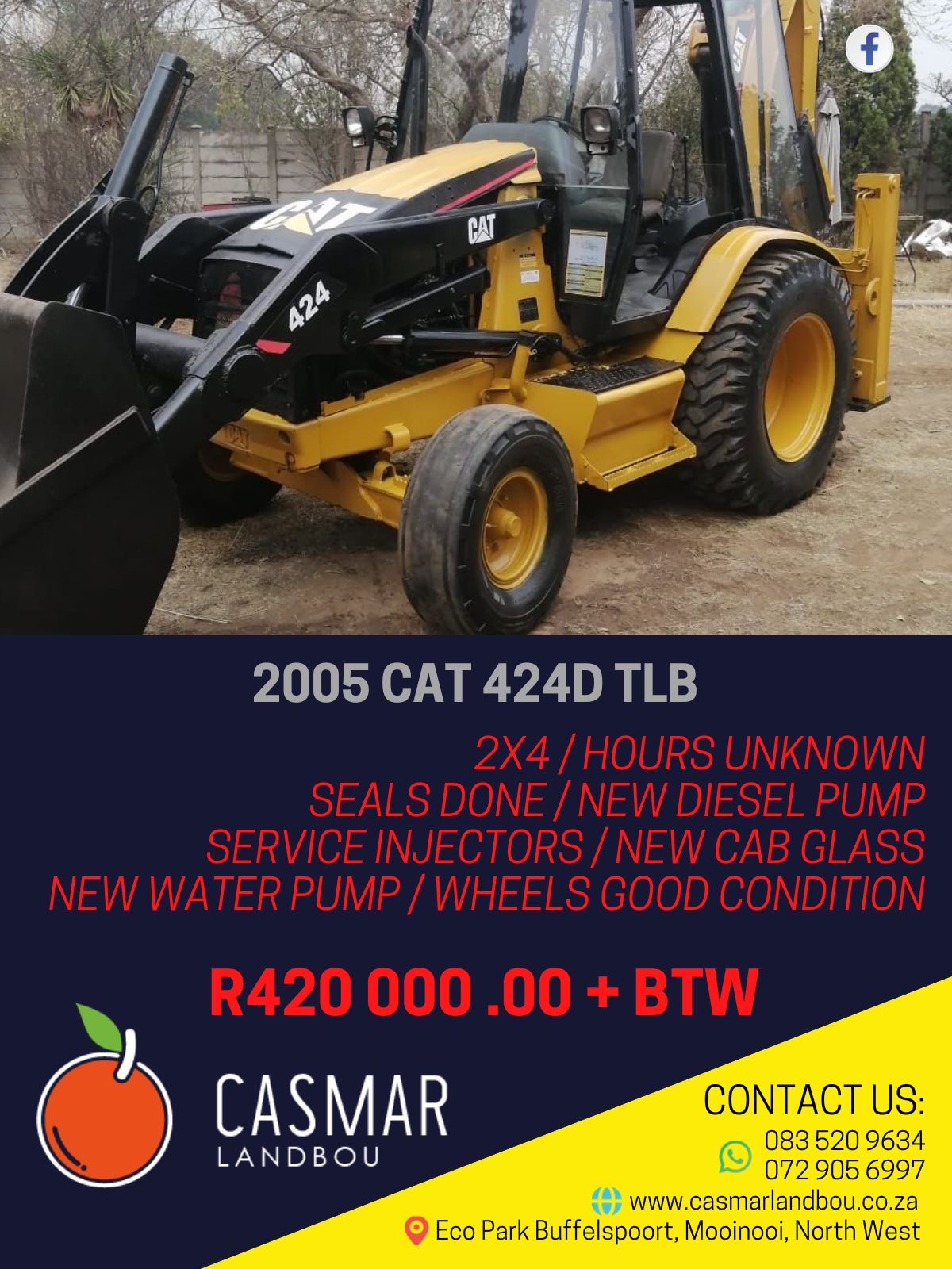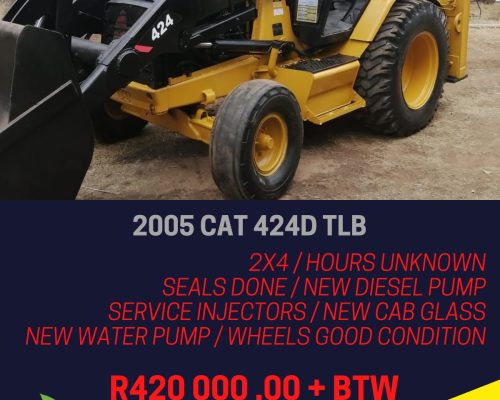 2005 Cat 424D TLB2×4Hours UnknownSeals DoneNew Diesel PumpService InjectorsNew Cab GlassNew Water PumpWheels Good Condition