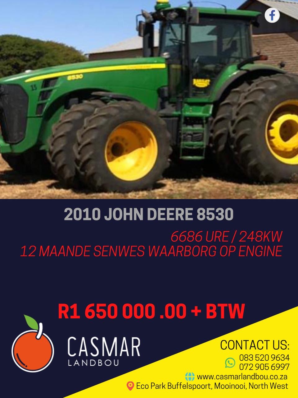 2010 John deere 8530 6686 ure 248 kw 12 maande Senwes waarborg op engine R1.650 000+Btw