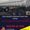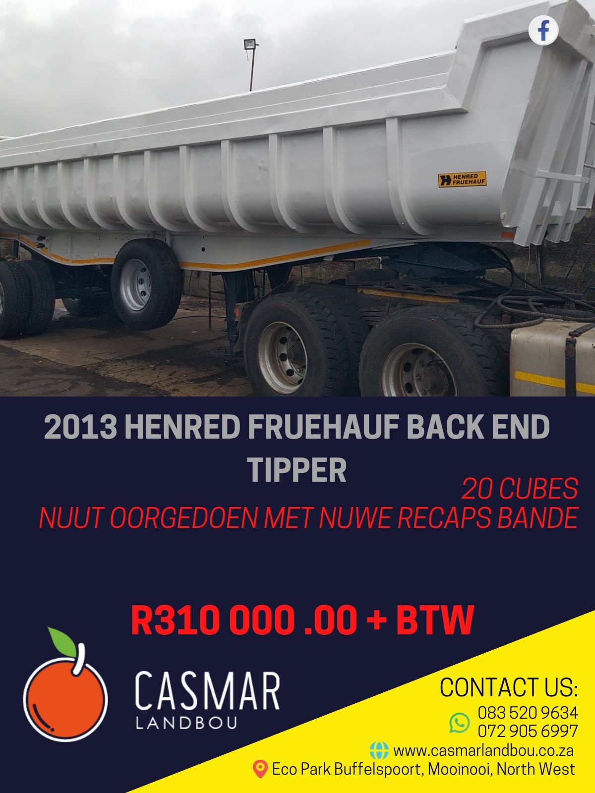 2013 Henred Fruehauf Back end Tipper 20cubes