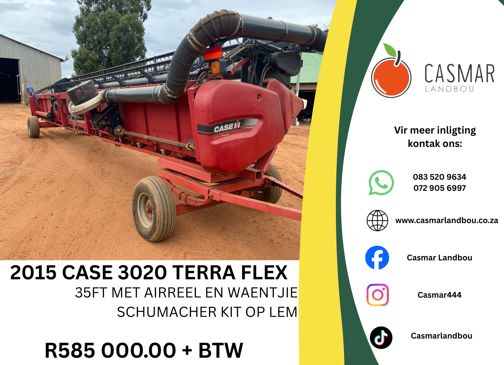 2015 Case 3020 terra flex 35ft met air reel en waentjie