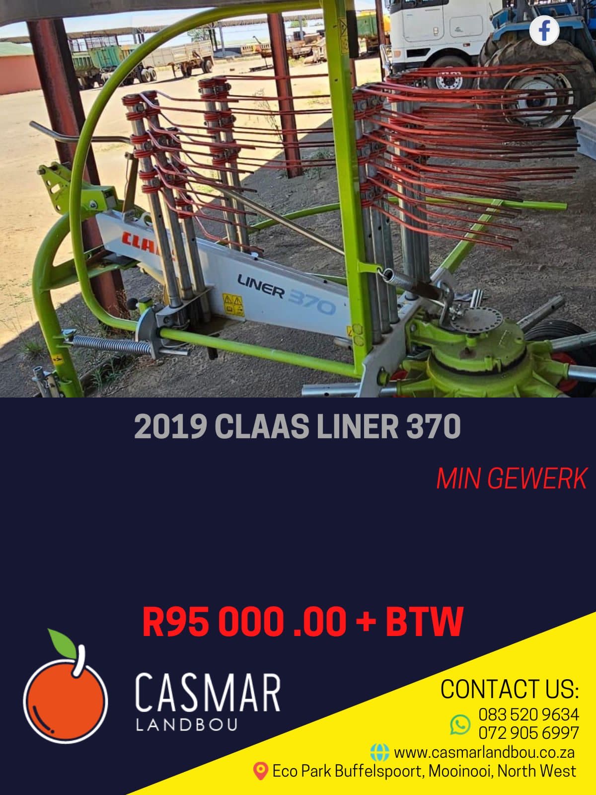 2019 Claas Liner 370 min gewerk R95 000+Btw