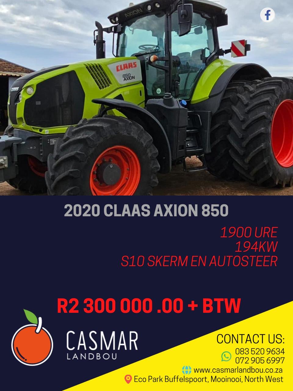 2020 Claas Axion 850 1900 ure 194 kw S10 skerm en Autosteer R2.300 000+Btw
