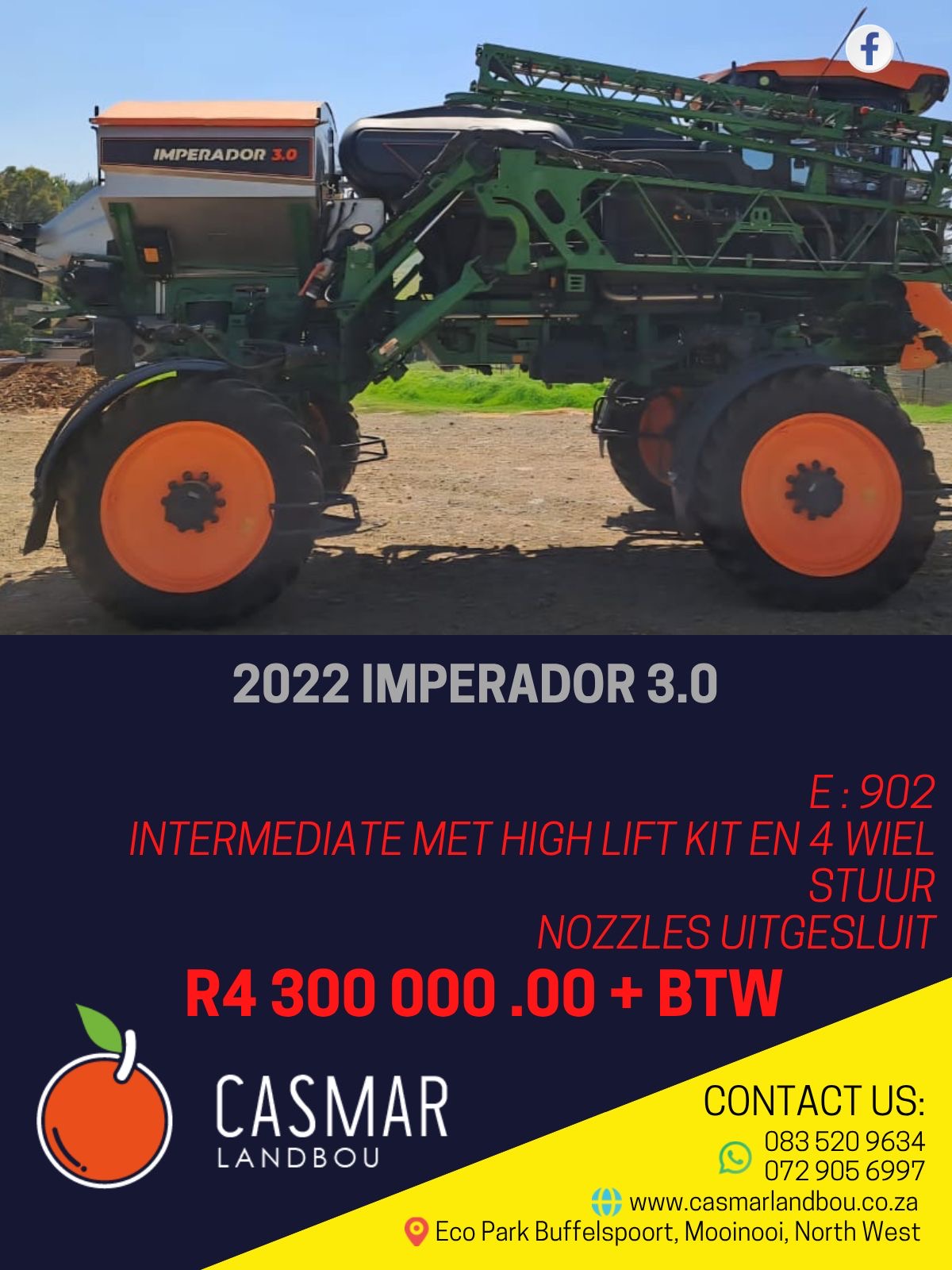 2022 Imperador 3.0 E : 902 Intermediate met high lift kit en 4 wiel stuurNozzles uitgesluit.