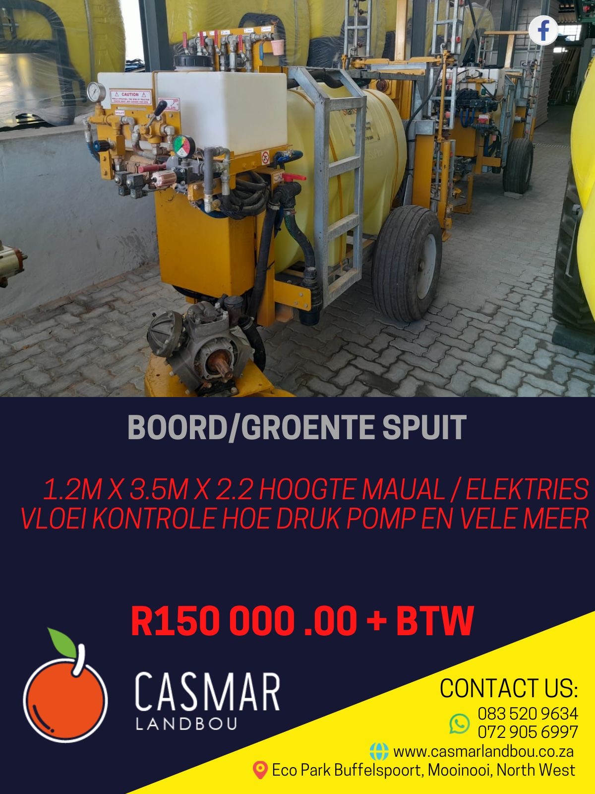 Boord/Groente spuit 1.2mx3.5mx2.2 hoogte manual/elektries vloei kontrole hoe druk pomp en vele meer R150 000+Btw