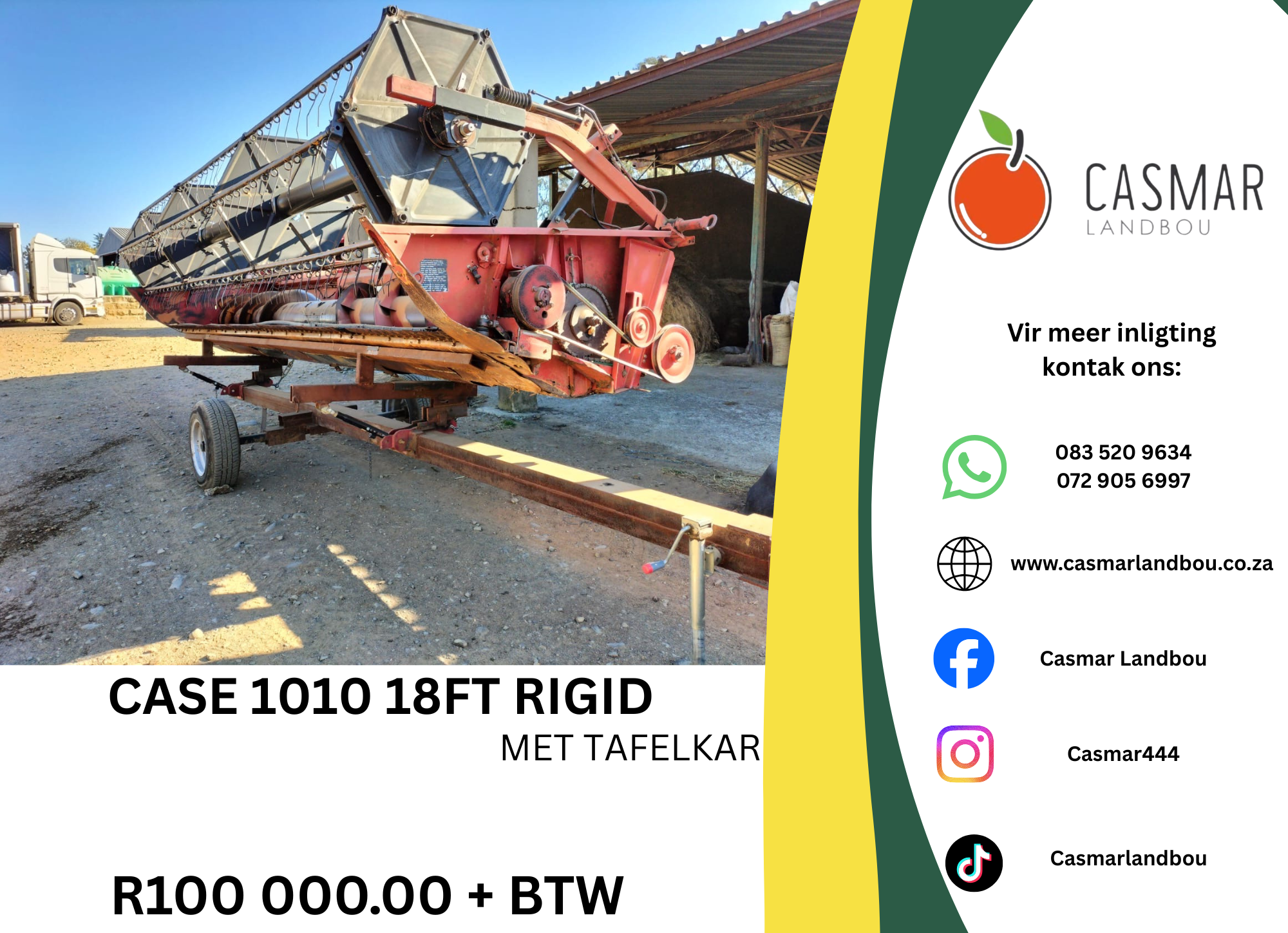 Case 1010 18Ft Tafel Riged met Tafelkar