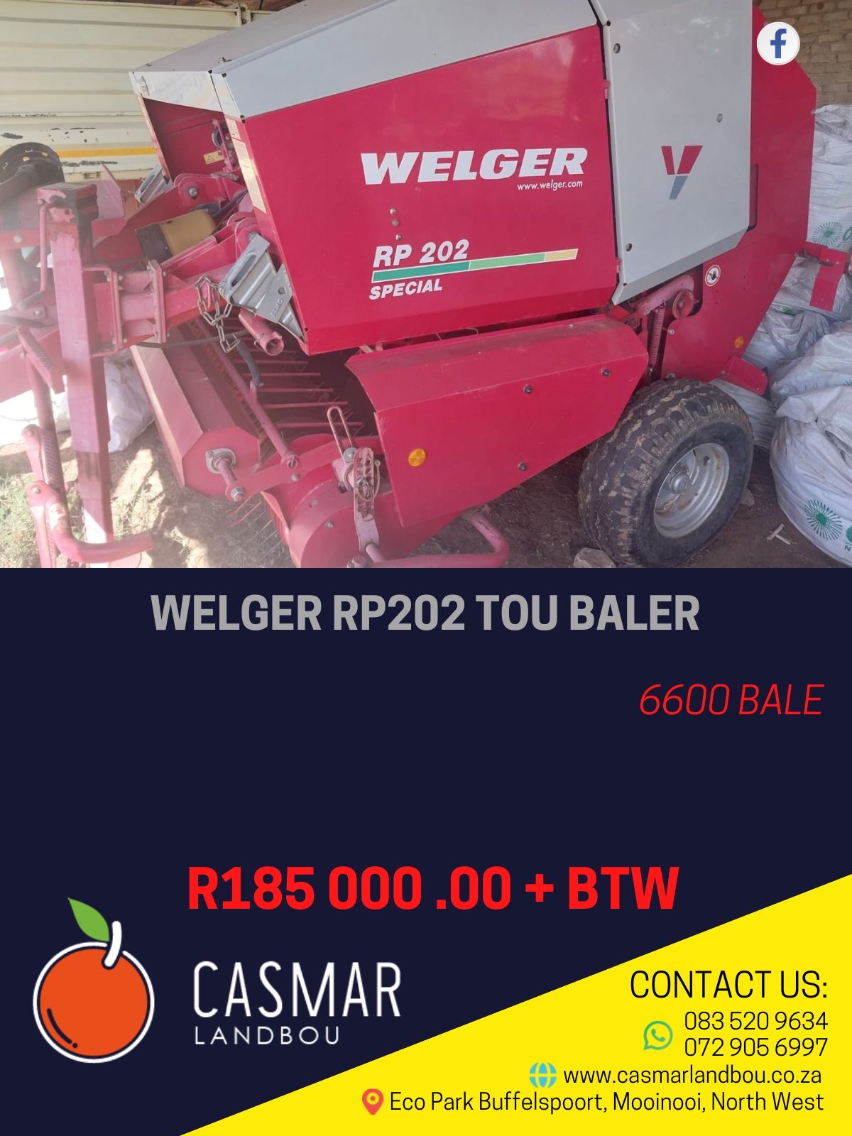Welger RP 202 Tou Baler 6600 Bale gemaak R185 000+Btw